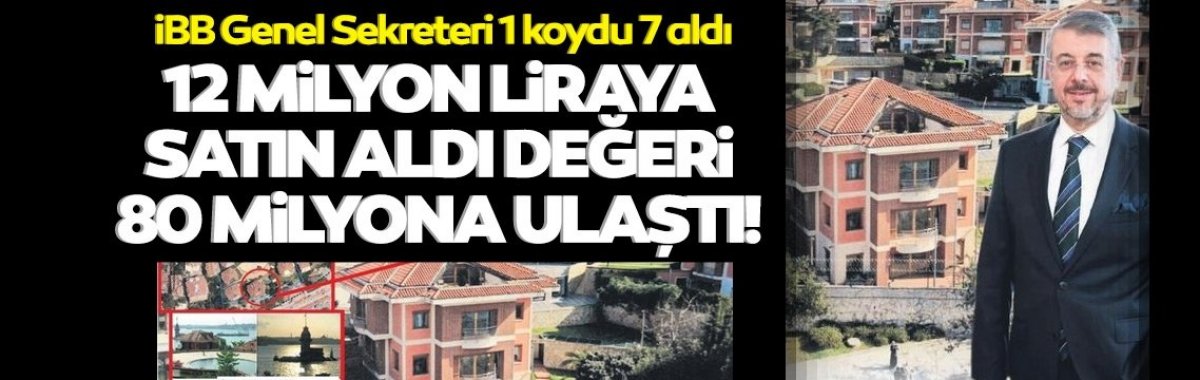 İstanbul Büyükşehir Belediyesi'ne (İBB) emekliye ayrılan Yavuz Erkut'un yerine Temmuz 2020'de genel sekreter olarak atanan Can Akın Çağlar'ın 2018'de bankaya ipotekli lüks boğaz manzaralı villası üç yılda 7 kat değer kazandı. Bankacılık piyasasında önemli bir yere sahip olan, Ziraat Bankası'nda genel müdürlük ve Bankacılık Düzenleme ve Denetleme Kurumu'nda (BDDK) yöneticilik yapan Çağlar, ballı satışta 1 koydu 7 kazandı.