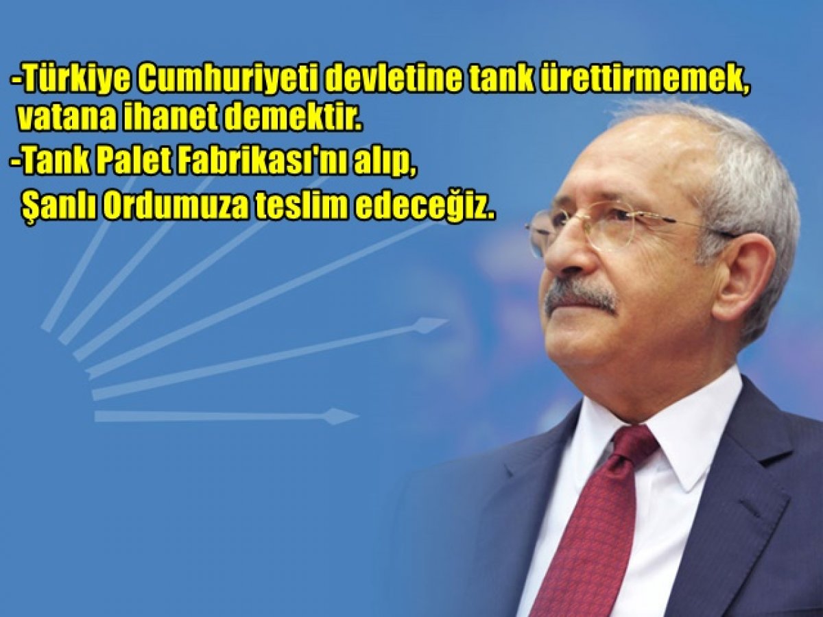 CHP Genel Başkanı Kılıçdaroğlu ''Türkiye Cumhuriyeti devletine tank ürettirmemek vatana ihanet demektir. ''