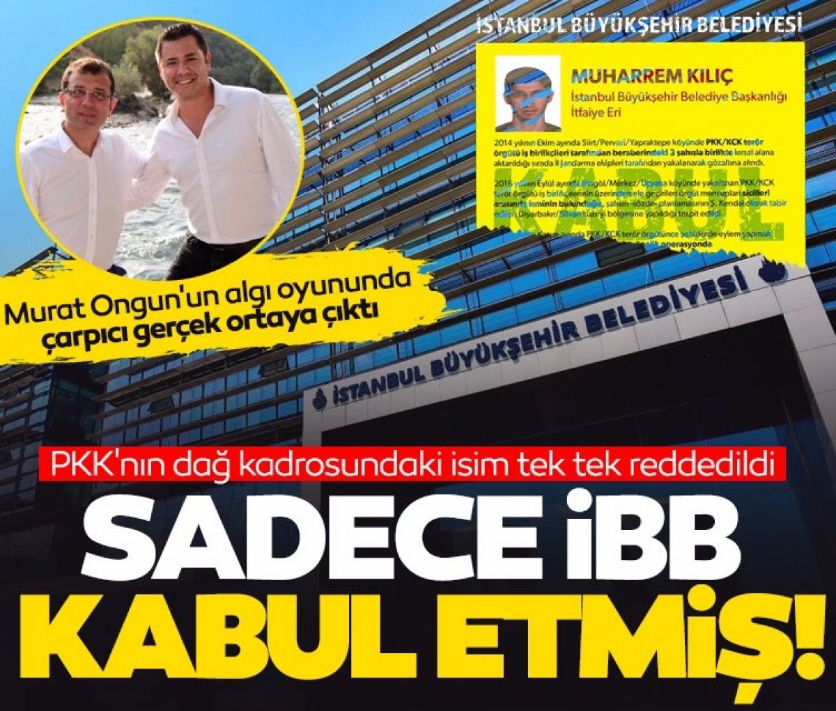 etmiş İBB Başkanı Ekrem İmamoğlu'nun Basın Danışmanı Murat Ongun, PKK'nın dağ kadrosunda yer alan ve İBB'de itfaiye eri olarak görev yapan Muharrem Kılıç'ın şehit kardeşi üzerinden provokasyona girişmişti. İçişleri Bakan Yardımcısı Mehmet Ersoy, açıkladığı belgelerle Muharrem Kılıç'ın Aile Bakanlığı, Diyarbakır Valiliği, Diyarbakır 1. İdare Mahkemesi ve Gaziantep Bölge İdare Mahkemesi tarafından güvenlik soruşturması nedeniyle reddedildiğini ancak İBB tarafından istihdam edildiğini ortaya koydu.