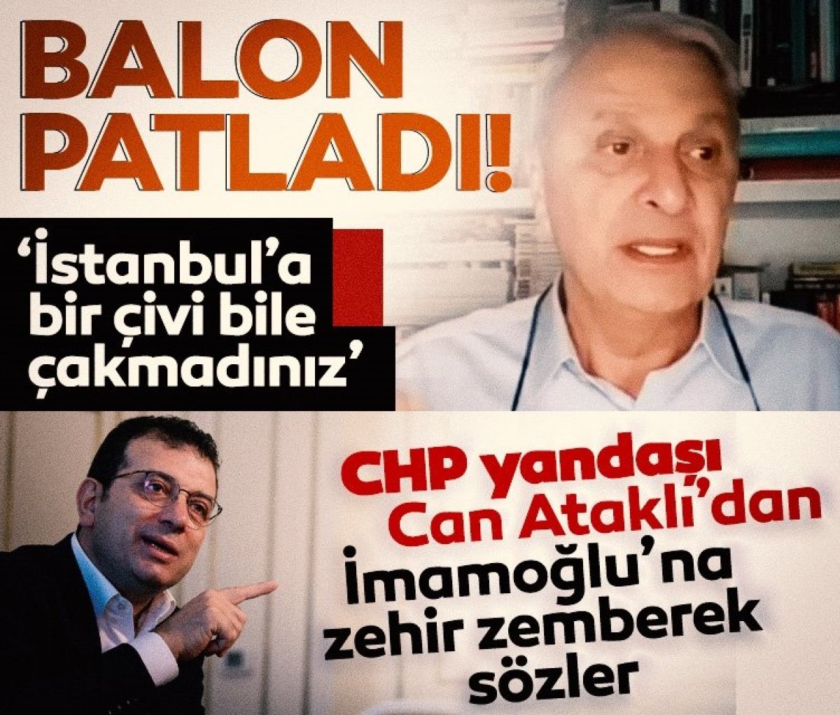 CHP'ye yakınlığı ile bilinen Can Ataklı, Youtube kanalında İBB Başkanı Ekrem İmamoğlu'na ateş püskürdü. Ataklı, "Ekrem İmamoğlu seçildiği günden bu yana bir dizi yanlış yaptı." diyerek balonun patladığını söyledi. Ataklı, İstanbul'a çivi bile çakılmadığını başka muhalif yazarların da artık söyleme vaktinin yaklaştığına da dikkat çekti.