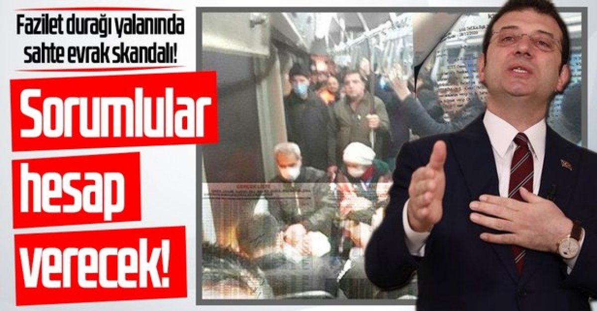 CHP'li İBB’nin Fazilet durağı yalanını sahte evrak düzenleyerek kapatmak istemesi İçişleri Bakanlığı’nın soruşturmasıyla ortaya çıktı. İçişleri Bakanı Süleyman Soylu, sahte evrak hazırlayan İBB Başkanı Ekrem İmamoğlu, Başkan Danışmanı Murat Ongun, 1. Hukuk Müşaviri Eren Sönmez Hukuk Müşaviri Özge Vural Öztürk hakkında soruşturma izni verdi.