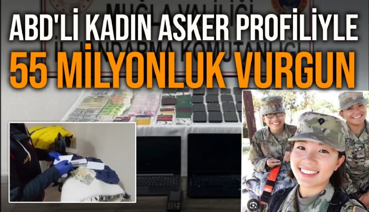 Muğla İl Jandarma Komutanlığı Asayiş Şube Müdürlüğü (JASAT) Timleri tarafından düzenlenen operasyonda, kendisini Suriye’de görev yapan Amerikalı kadın asker olarak tanıtarak 43 vatandaşı dolandırarak 55 milyon TL’lik vurgun yapan kadın ve 21 çete üyesi gözaltına alındı.